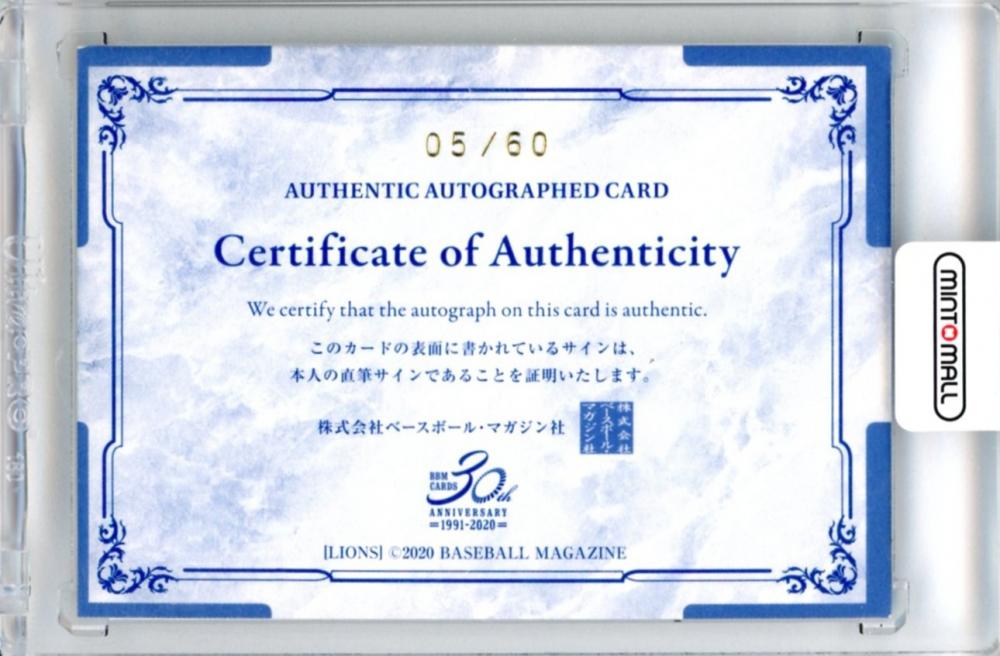 2020 BBM 埼玉西武ライオンズ レオ 直筆サインカード【05/60】