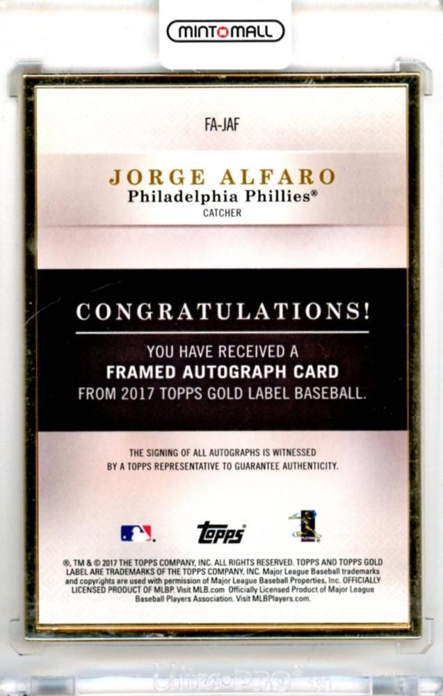 2017 Topps Gold Lavel Jorge Alfaro #FA-HD Framed Autograph Card【097/486】 Phillies