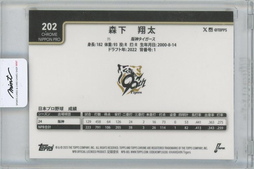 2025 TOPPS Chrome NPB #202 / 森下翔太(阪神タイガース) Gold Shimmer Refractorsパラレルカード 【36/50】