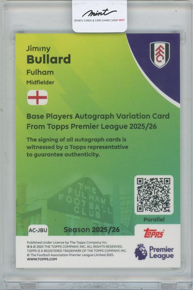 2025-26 TOPPS English Premier League Autographs Green Mini Diamond / JIMMY BULLARD(Fulham) 【46/99】
