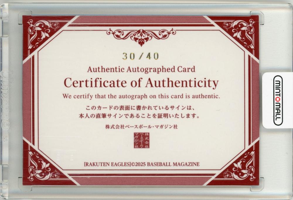 2025 BBM 東北楽天ゴールデンイーグルス 早川隆久 直筆サインカード【30/40】