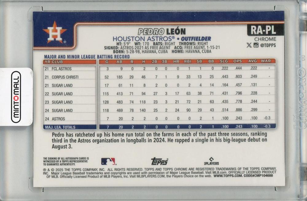 2025 TOPPS Chrome Pedoro Leon AUTO【13/50】 Houston Astros