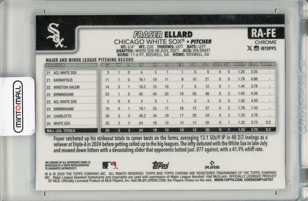 2025 TOPPS Chrome Fraser Ellard AUTO Chicago White Sox