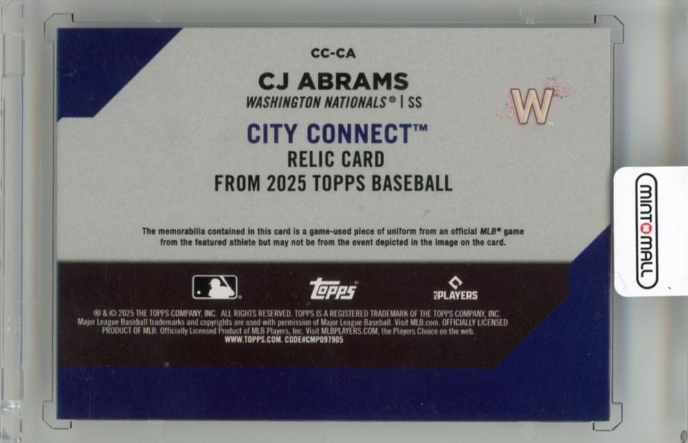 2025 TOPPS CJ Abrams City Connect Swatches #CCCA Washington Nationals