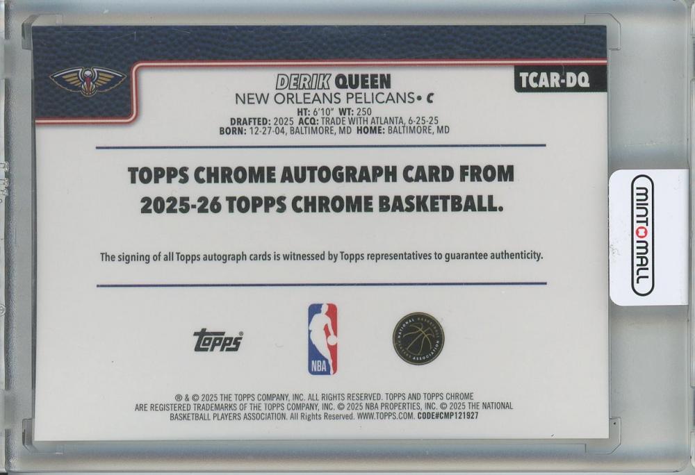 2025-26 Topps Chrome Derik Queen Rookie Autographs #TCARDQ New Orleans Pelicans