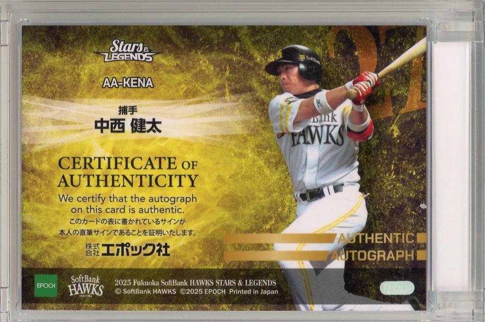 2025 EPOCH 福岡ソフトバンクホークス STARS&LEGENDS 中西健太 直筆サインカード【04/20】