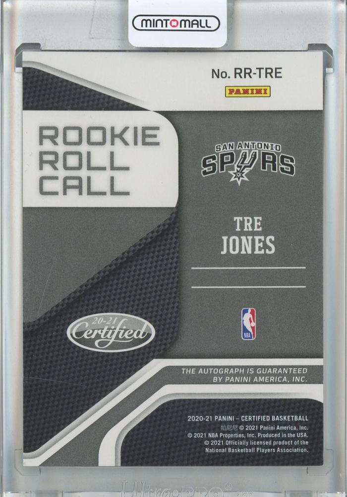 2020-21 Panini Certified Tre Jones Rookie Roll Call #7 San Antonio Spurs