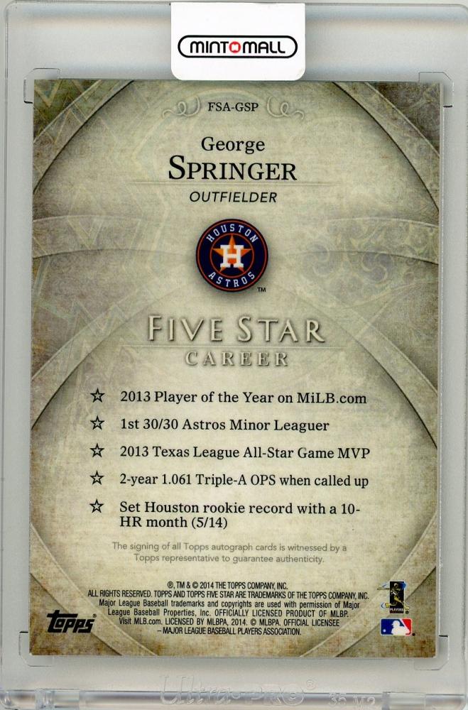 2014 Topps Five Star George Springer Autographs【113/499】 Houston Astros