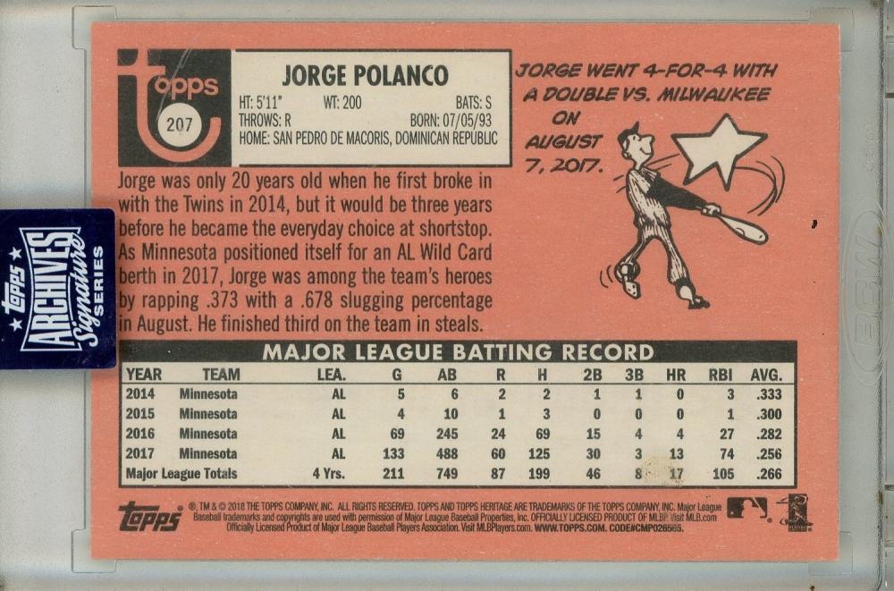 2020 Topps Archives Signature Jorge Polanco 2018 Topps Heritage【59/99】 Minnesota Twins