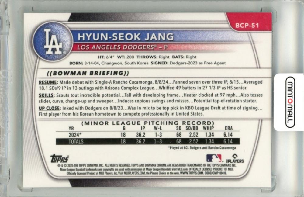 2025 Topps Pro Debut Hyun-Seok Jang Chrome Gold Autographs【02/50】 Los Angeles Dodgers
