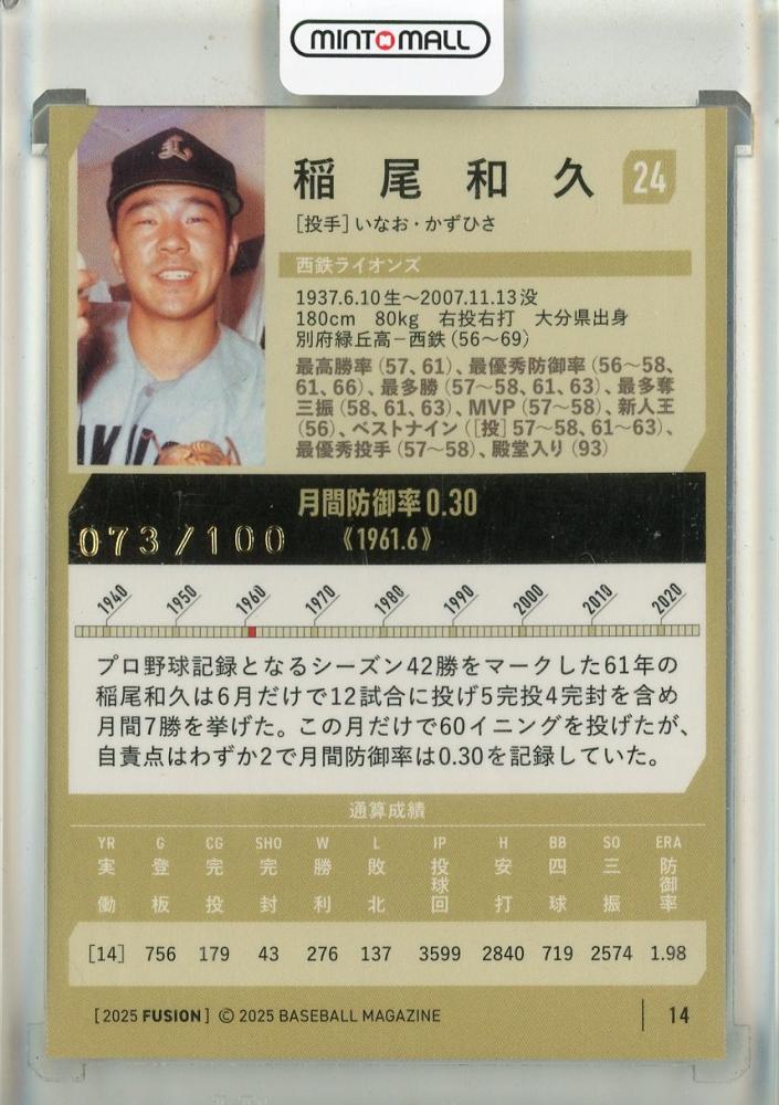 2025 BBM FUSION 稲尾和久 #14 記録の殿堂 金箔サイン版【026/100】 ライオンズ