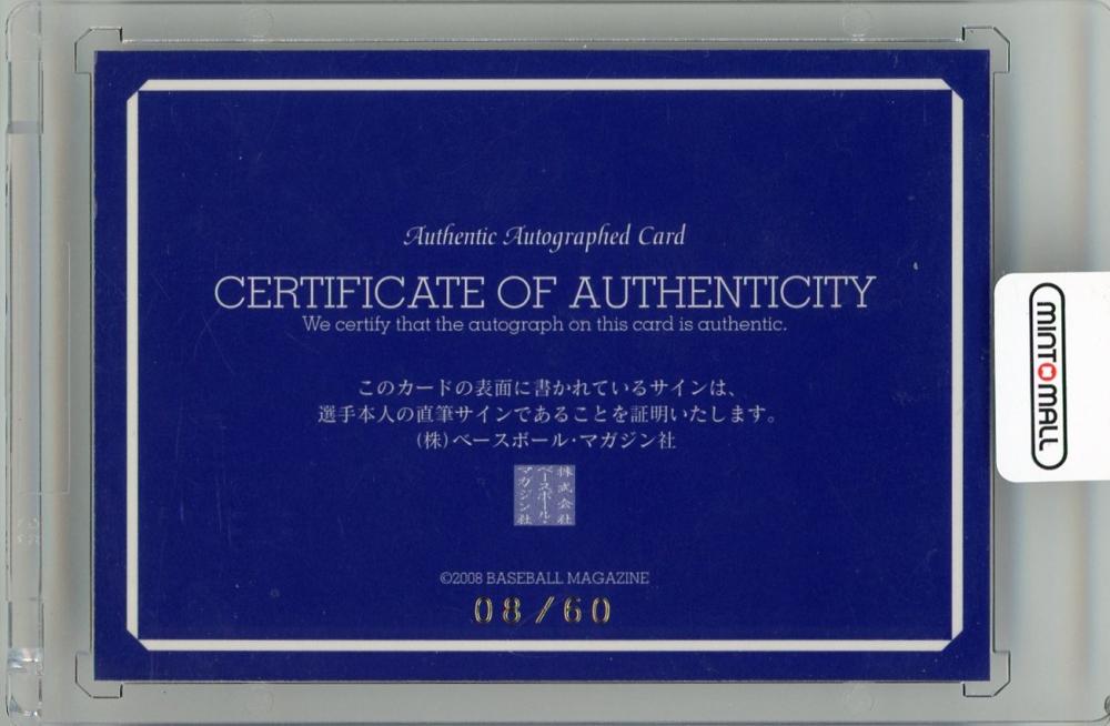 2008 BBM 東京ヤクルトスワローズ 真中満 直筆サインカード【08/60】