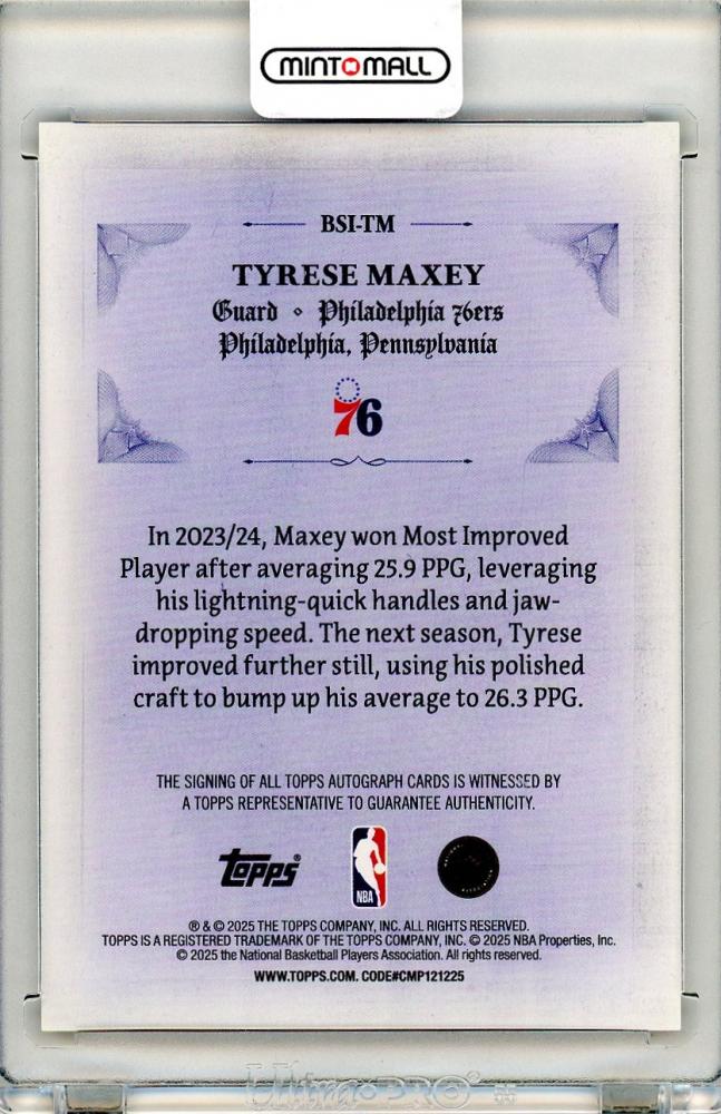 2025-26 Topps Flagship Basketball Tyrese Maxey Signed and Sealed Orange Holo Foil Autograph 【10/25】 Philadelphia 76ers