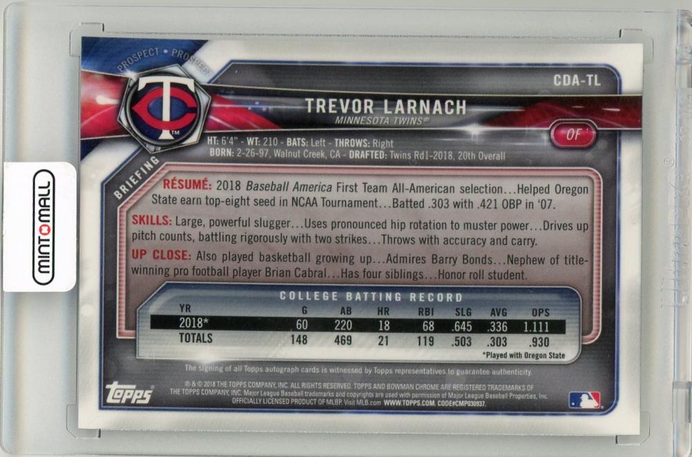 2018 Bowman Draft Trevor Larnach Chrome Autographs Minnesota Twins