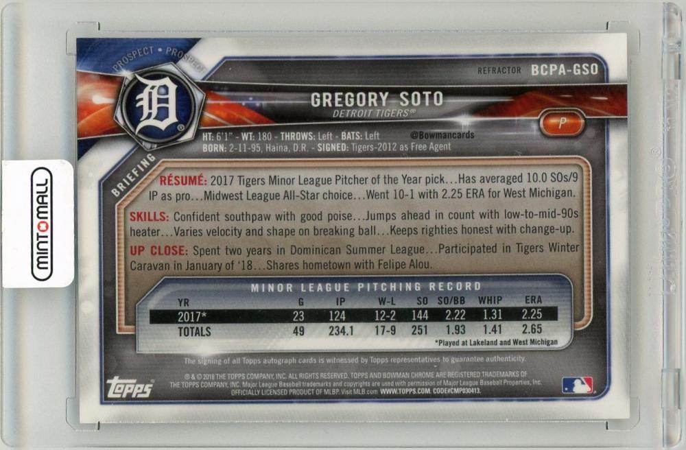 2018 Bowman Draft Gregory Soto Chrome Autographs Refractors【284/499】 Detroit Tigers