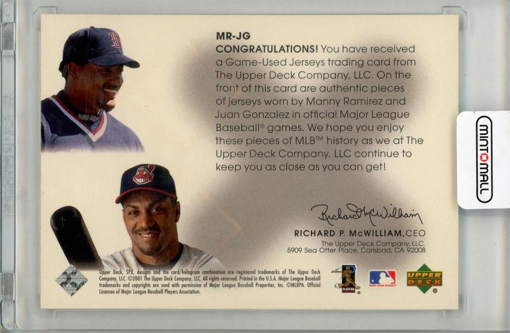 2001 UPPER DECK Manny Ramirez/Juan Gonzalez #MR-JG Boston Red Sox/Cleveland Guardians