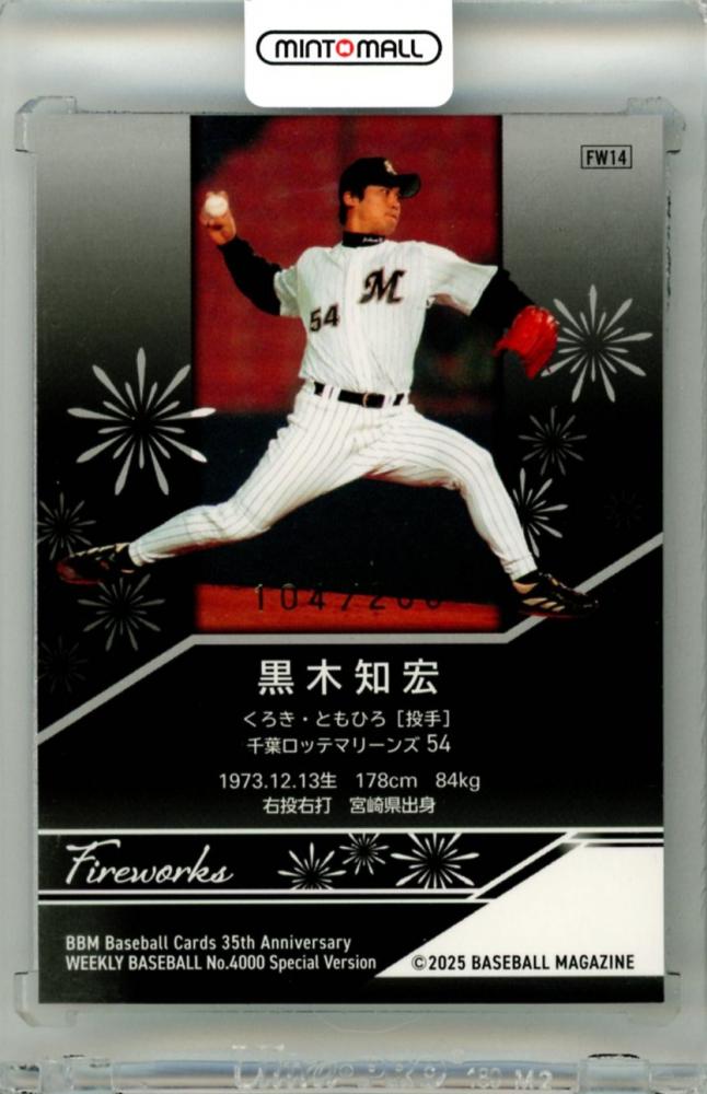2025 BBM BBMカード35周年&週刊ベースボール4000号記念 スペシャルバージョン 黒木知宏 #FW14 FIREWORKS 金箔版【187/300】 ロッテ