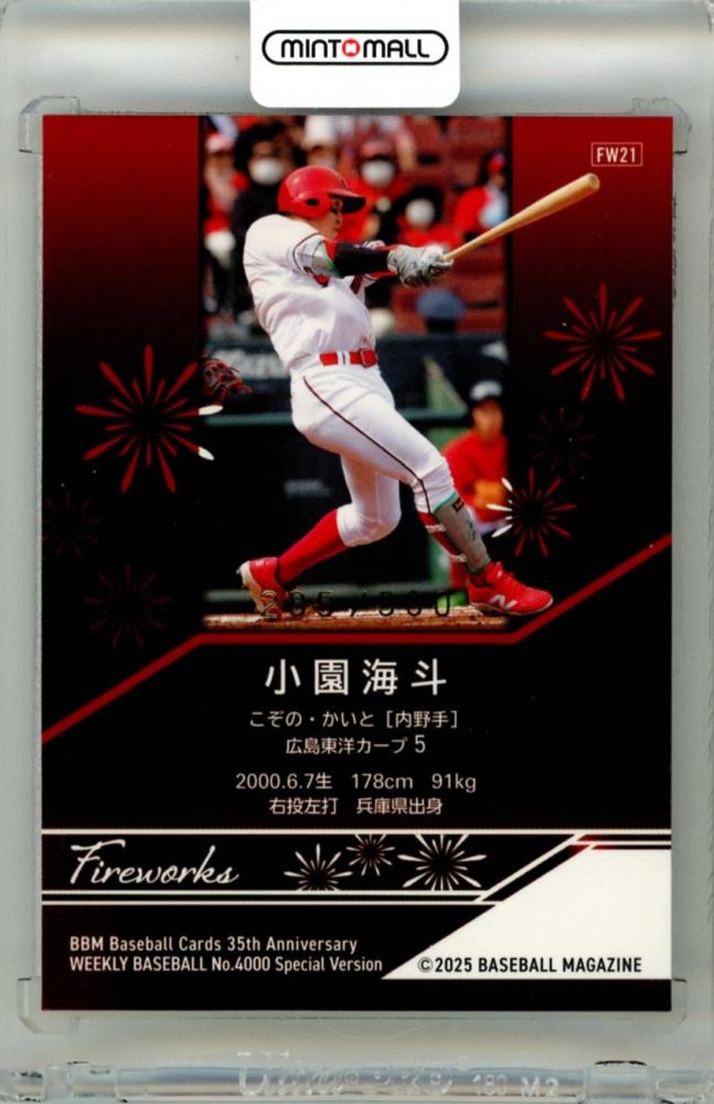 2025 BBM BBMカード35周年&週刊ベースボール4000号記念 スペシャルバージョン 小園海斗 #FW21 FIREWORKS 金箔版【285/300】 広島