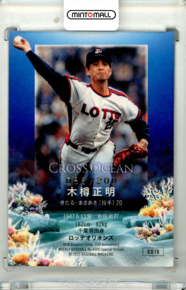 2025 BBM BBMカード35周年&週刊ベースボール4000号記念 スペシャルバージョン 木樽正明 #CO19 CROSS OCEAN 銀紙金箔サイン版【086/200】 ロッテ