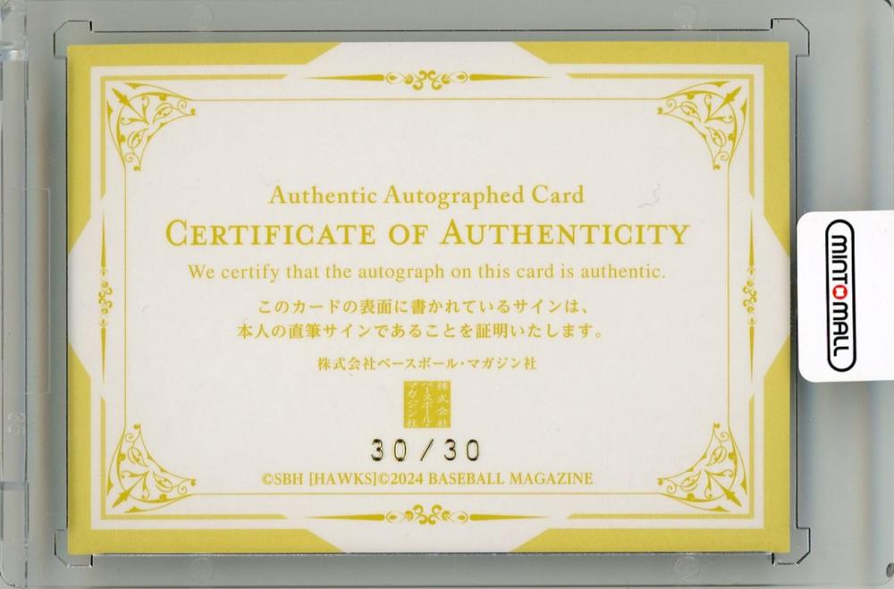 2024 BBM 福岡ソフトバンクホークス 川原田純平 直筆サインカード【Last No. 30/30】