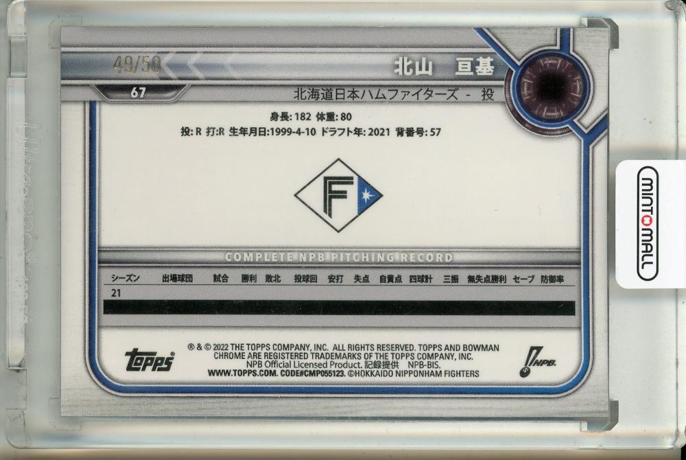 2022 Bowman Chrome NPB 北山亘基 金パラレル【49/50】 北海道日本ハムファイターズ