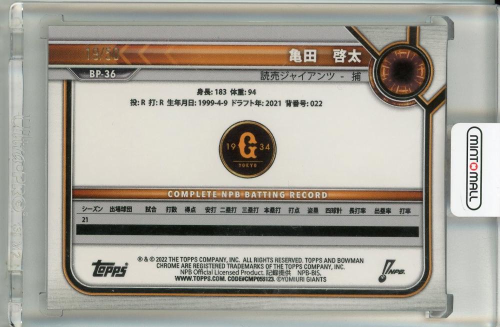 2022 Bowman Chrome NPB 亀田啓太 金パラレル【19/50】 読売ジャイアンツ