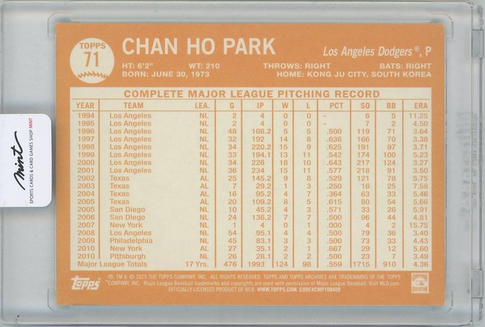 2025 TOPPS Archives Aqua Scope Foilboard #71 / CHAN HO PARK(Los Angeles Dodgers) 【66/75】