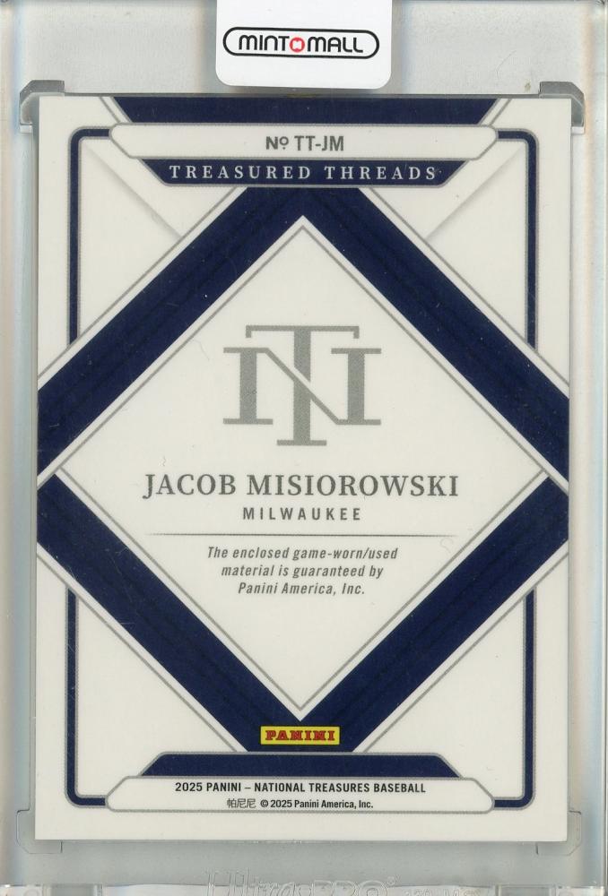 2025 Panini National Treasures Jacob Misiorowski Treasured Threads Blue【22/49】 Milwaukee Brewers