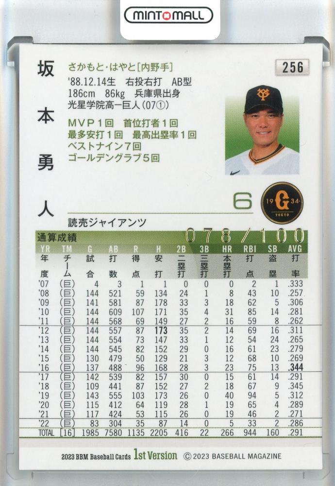 2023 BBM 1stバージョン 坂本勇人 金箔サイン【078/100】 読売ジャイアンツ
