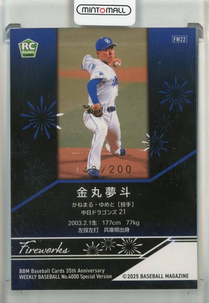 BBM 35周年&週刊ベースボール4000号スペシャルバージョン 金丸夢斗 FIREWORKS 金箔版【037/300】 中日ドラゴンズ