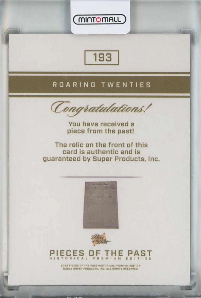 2024 Pieces of the Past Historical Premium Edition Single Relics Silver #193 Roaring Twenties