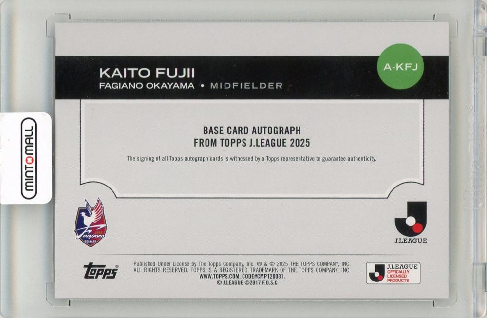 2025 TOPPS J. LEAGUE FLAGSHIP 藤井海和 Autographs Black Foil Parallels【2/10】 ファジアーノ岡山