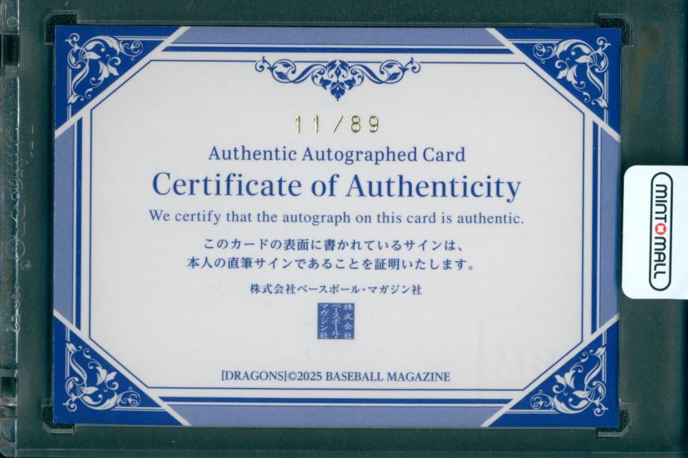 2025 BBM 中日ドラゴンズ オルランド・カリステ 直筆サインカード【11/89】 中日ドラゴンズ