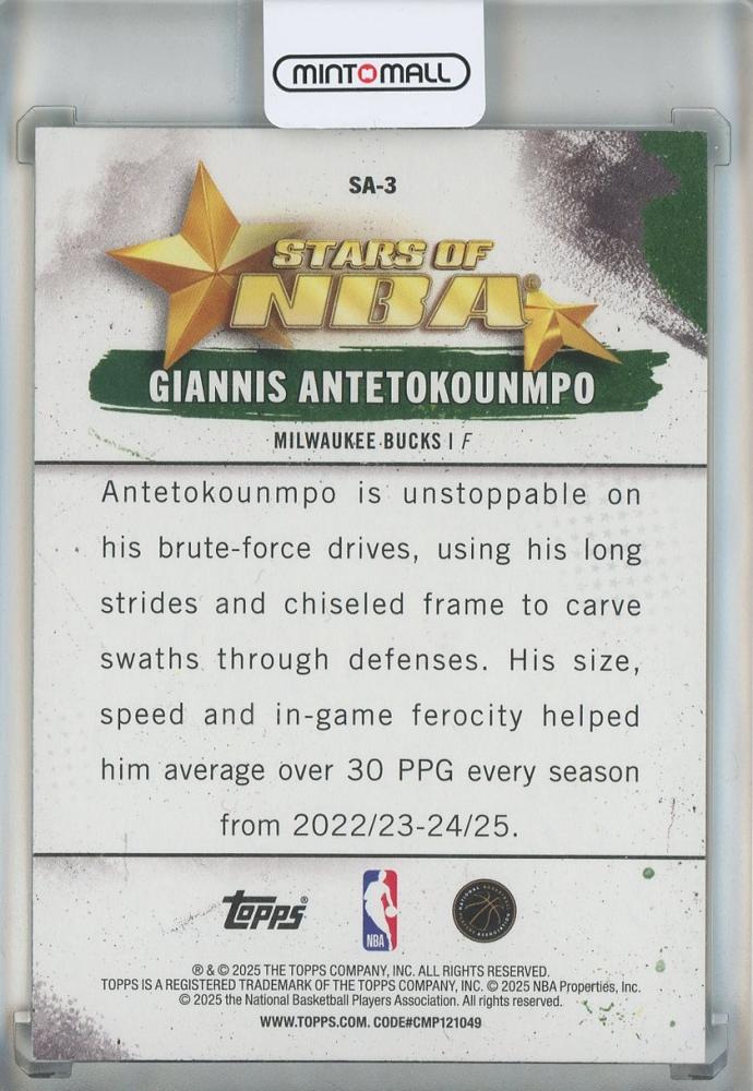 2025-26 Topps Giannis Antetokoumpo Stars of the NBA Green Rainbow #SA3【94/99】 Milwaukee Bucks