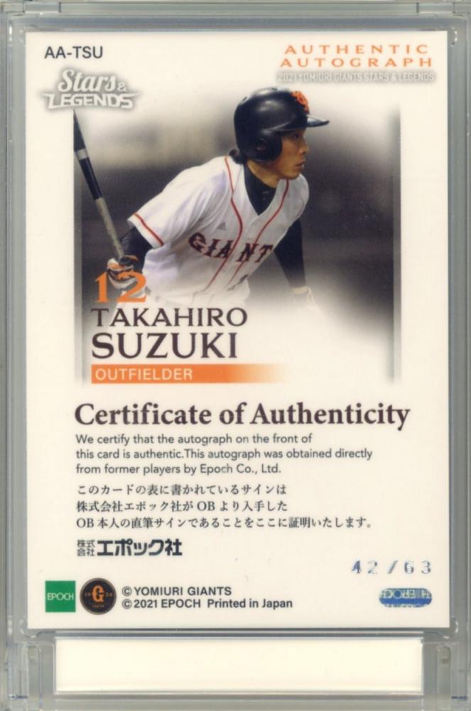 2021 EPOCH 読売ジャイアンツ STARS&LEGENDS 鈴木尚広 #AA-TSU AUTHENTIC AUTOGRAPH 直筆サインカード【42/63】