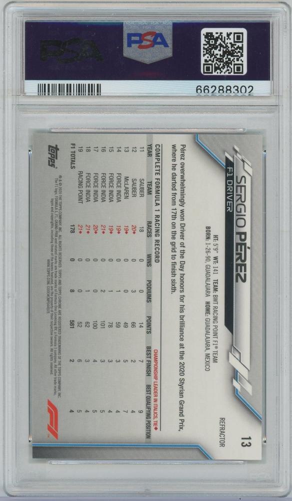 2020 TOPPS Chrome Formula 1 Refractors #13 / SERGIO PEREZ(BWT Racing Point F1 Team) [PSA10/GEM MINT]