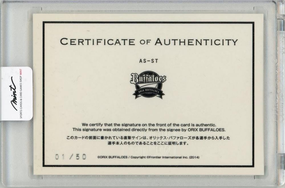 2014 フロンティア オリックス・バファローズ SIGNATURE EDITION 東野峻 AUTHENTIC SIGNATURE 50枚限定 ファーストナンバー【01/50】