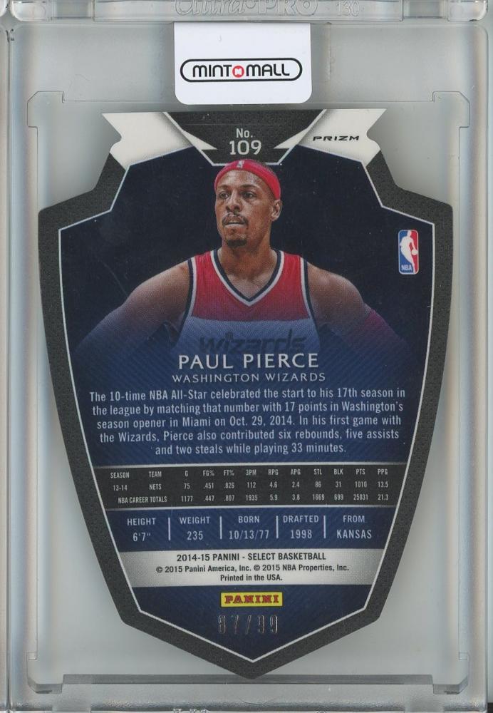 2014-15 Panini Select Paul Pierce Premier Light Purple Die Cut #109【87/99】 Washington Wizards
