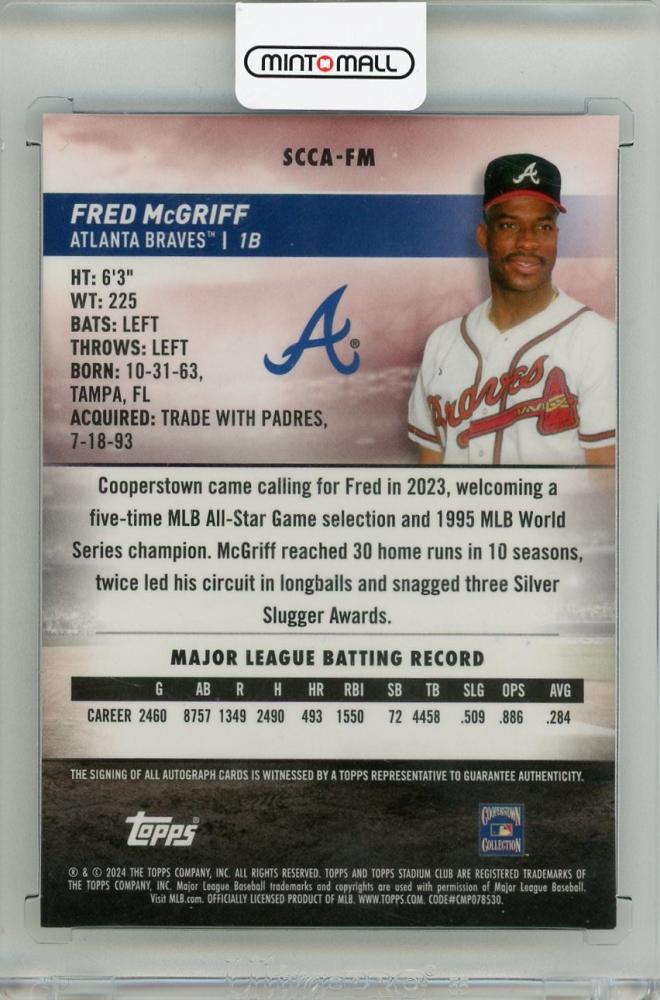 2024 TOPPS Stadium Club Chrome Fred McGriff Autographs #SCCAFM Atlanta Braves