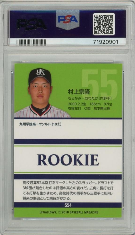 BBM 東京ヤクルトスワローズ 2018 村上宗隆 レギュラーカード【PSA 10 GEM MT】