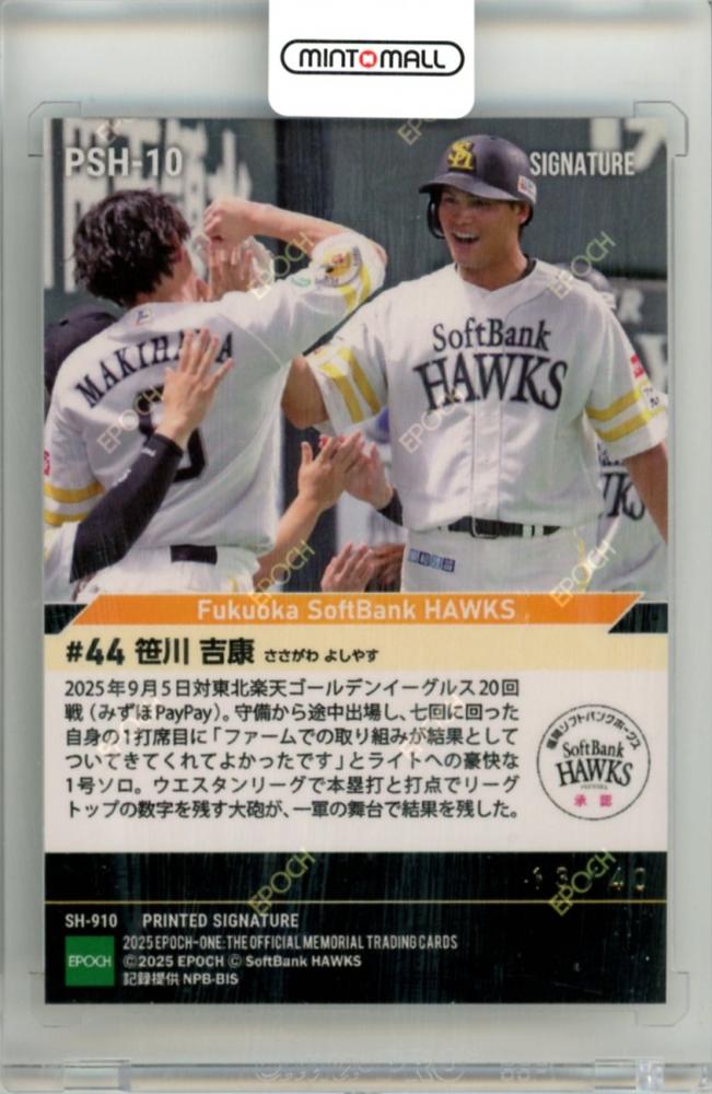 2025 EPOCH ONE SIGNATURE 笹川吉康 #PSH-10 PRINTED SIGNATURE【13/40】 ソフトバンク