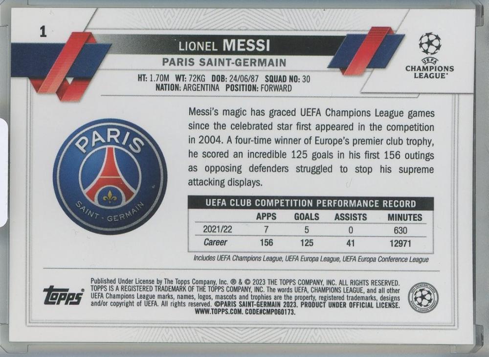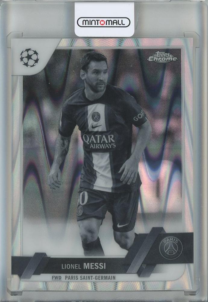 2022-23 Topps Chrome UEFA Club Competitions Lionel Messi Black and White RayWave Refractors #1 Paris Saint-Germain