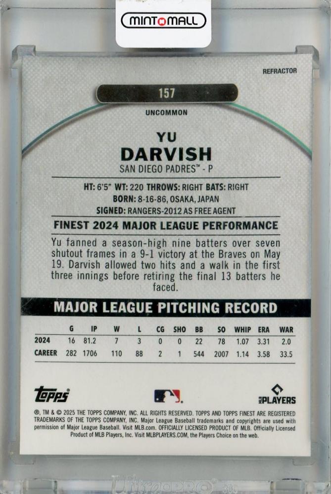 2025 Topps Finest Yu Darvish Uncommon Refractor #157 ※裏面傷あり San Diego Padres