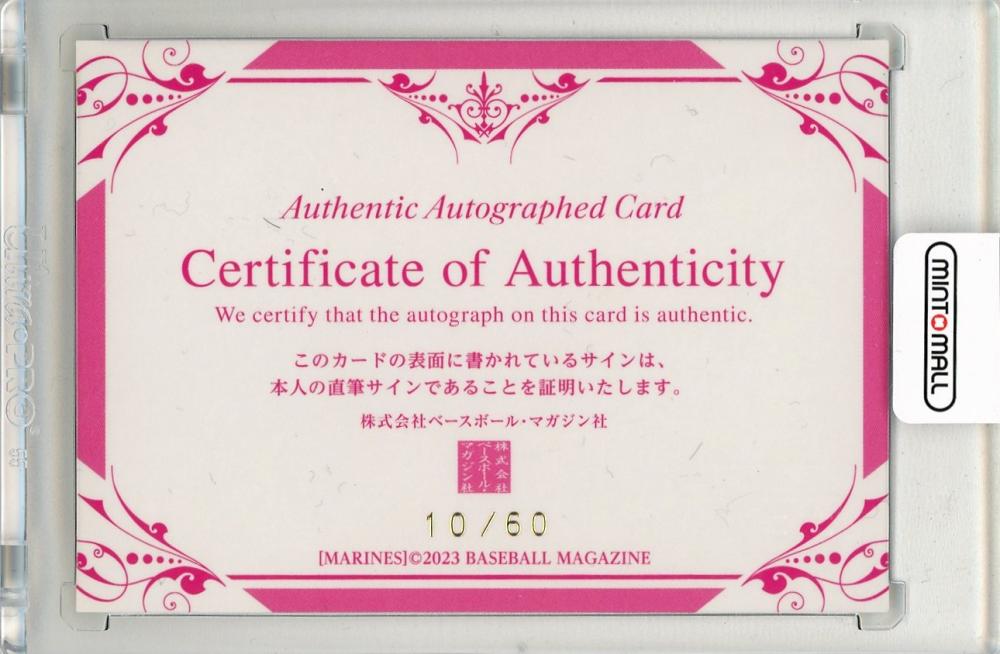 2022 BBM 千葉ロッテマリーンズ 福浦和也 直筆サインカード【10/60】
