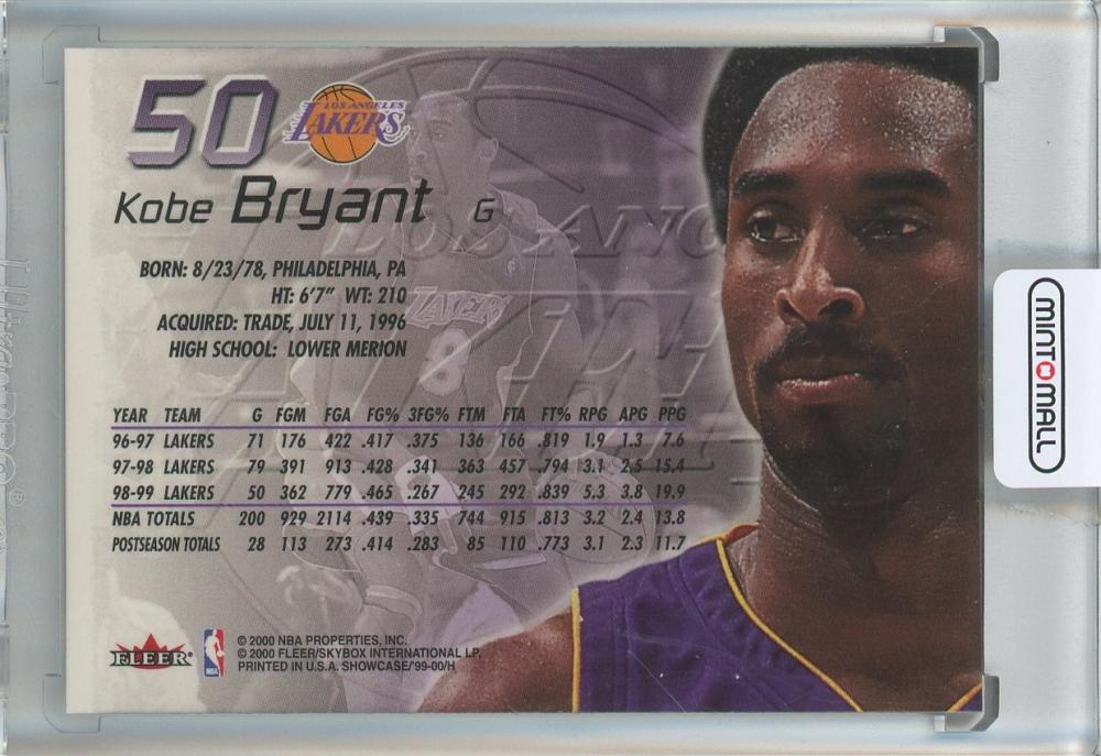 1999-00 Fleer Kobe Bryant Flair Showcase #50 Los Angeles Lakers