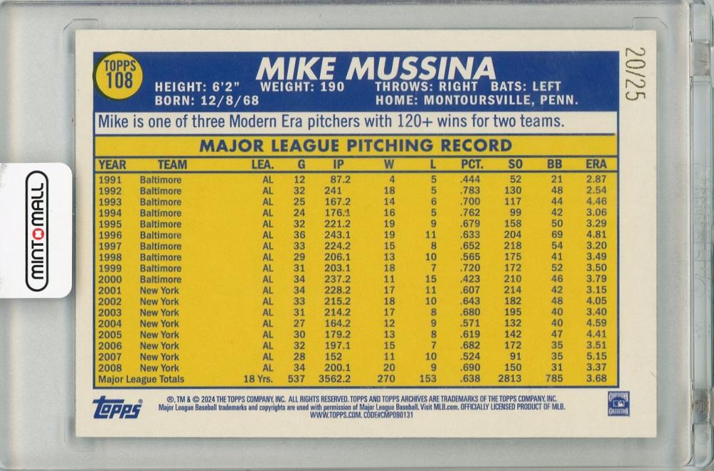2024 TOPPS Archives Mike Mussina #108【20/25】 Baltimore Orioles