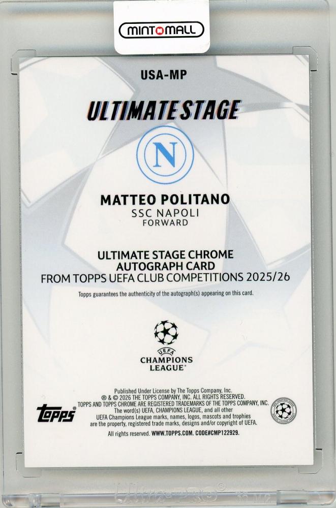 2025-26 Topps UEFA Club Competitions Matteo Politano Ultimate Stage Chrome Autograph【USA-MP】 SSC Napoli