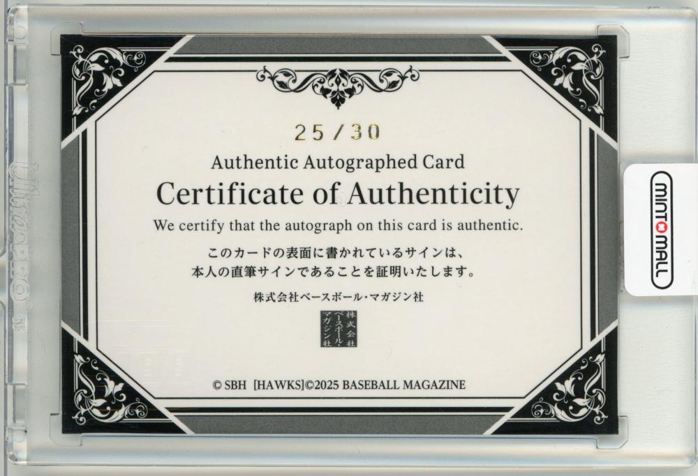 2025 BBM 福岡ソフトバンクホークス 谷川原健太 直筆サインカード【25/30】