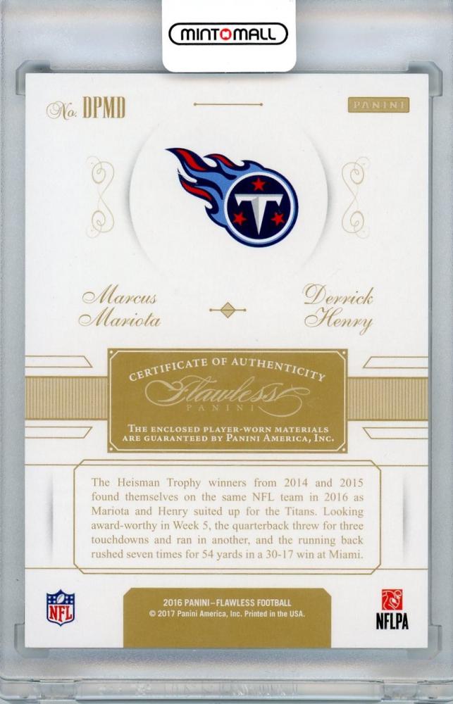 2016 PANINI FLAWLESS Marcus Mariota/Derrick Henry PATCH #DPMD【3/15】 Tennessee Titans