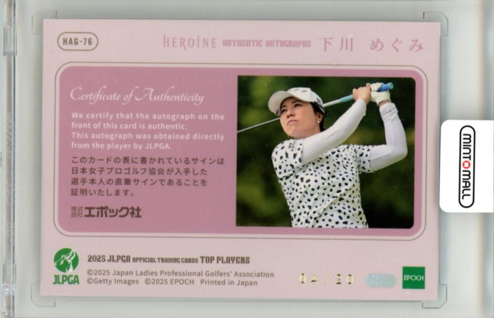 2025 EPOCH JLPGA TOP PLAYERS 下川めぐみ #HAG-76 HEROINEオートグラフ 直筆サインカード 通常版【04/20】